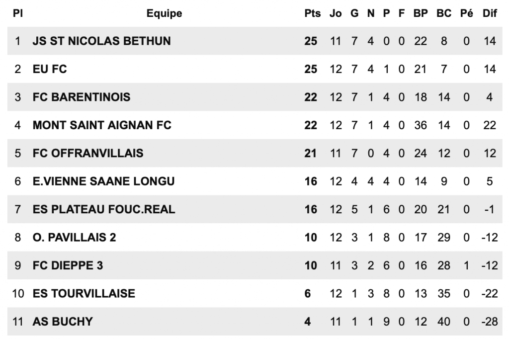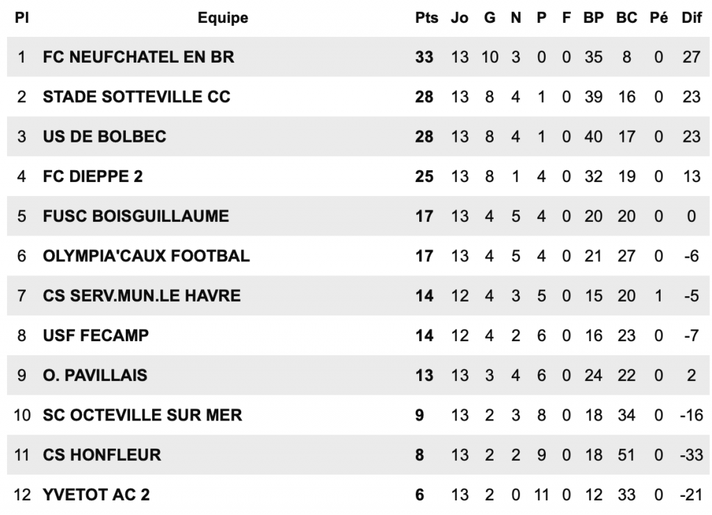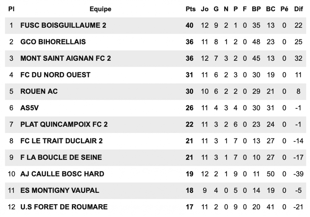 E.VIENNE SAANE LONGU  3- FC OFFRANVILLAIS  4