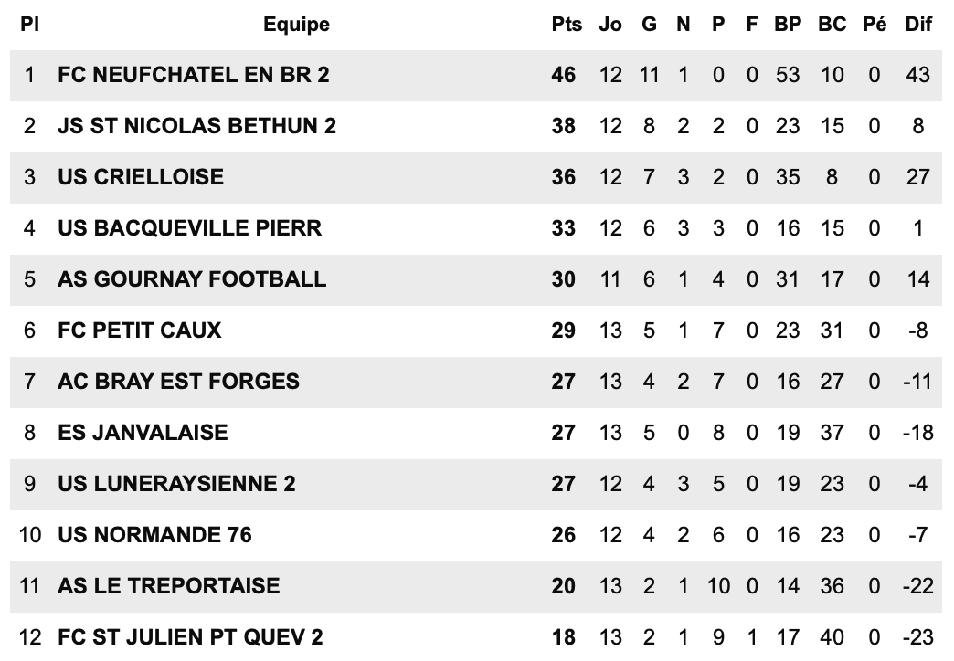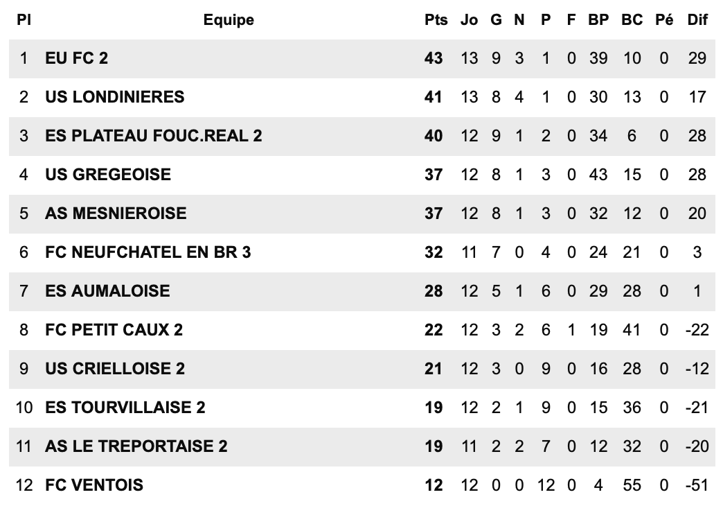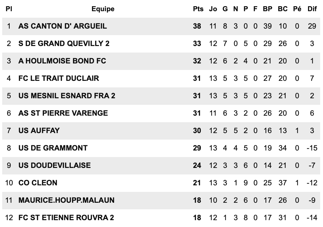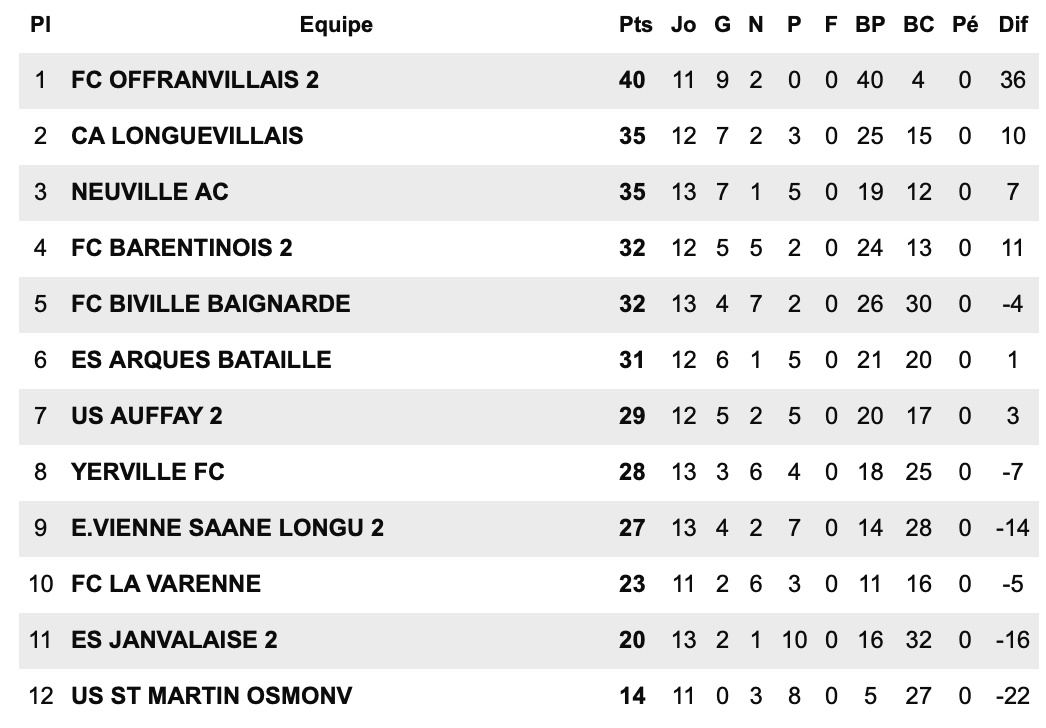 E.VIENNE SAANE LONGU  3- FC OFFRANVILLAIS  4