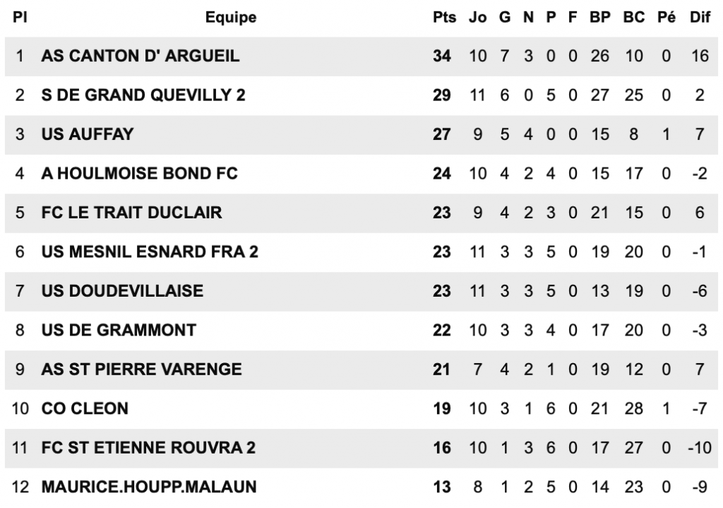 Dans le groupe B de D1, l’AS Canton d’Argueil est bien positionnée pour retrouver la R3 en fin de saison. La clé du succès résidera dans la capacité du club à s’entraîner correctement afin de conserver ce niveau de compétitivité.