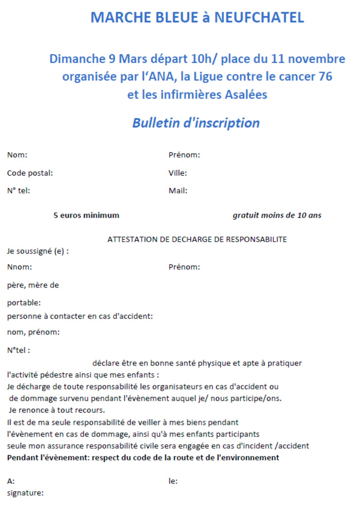 Organisée par l’Amicale Neufchâteloise d’Athlétisme, la Ligue contre le cancer 76 et les infirmières Asalées, cette marche de 7 km est ouverte à tous. Le départ sera donné depuis la Halle au Fromage.
