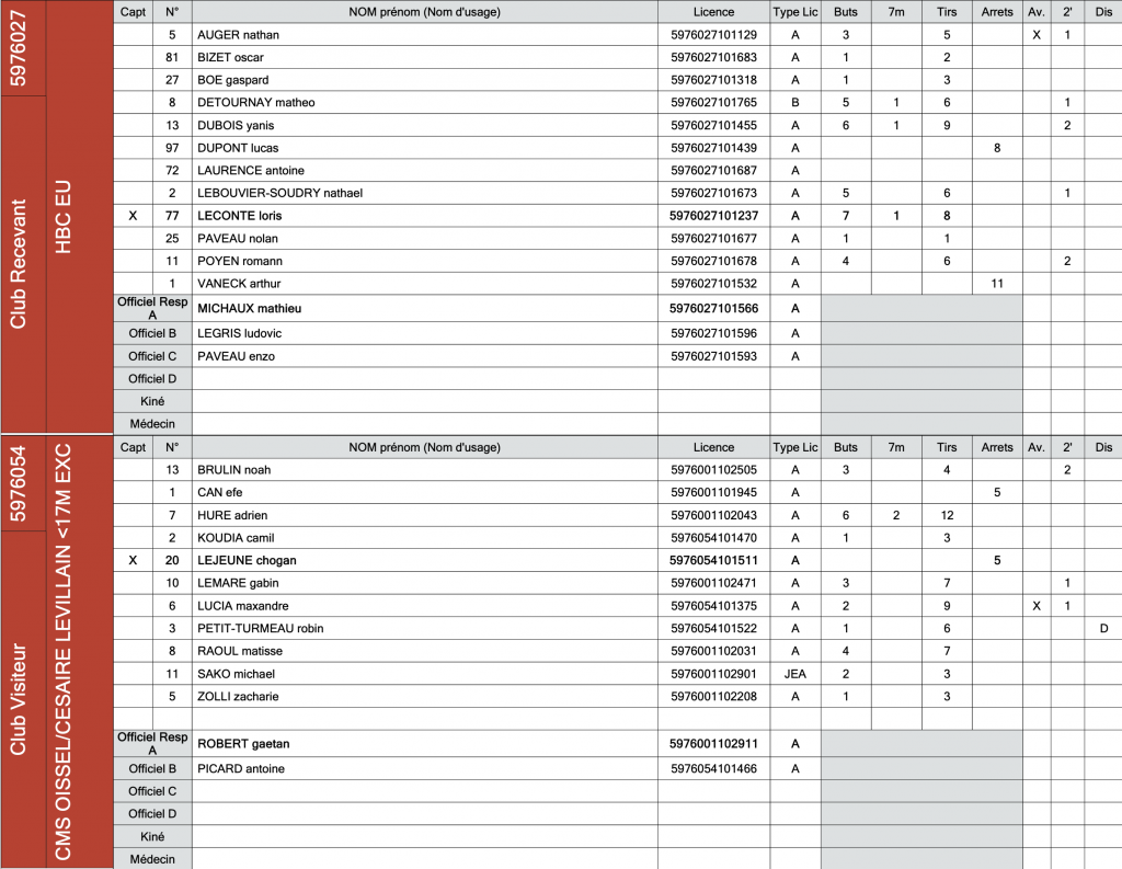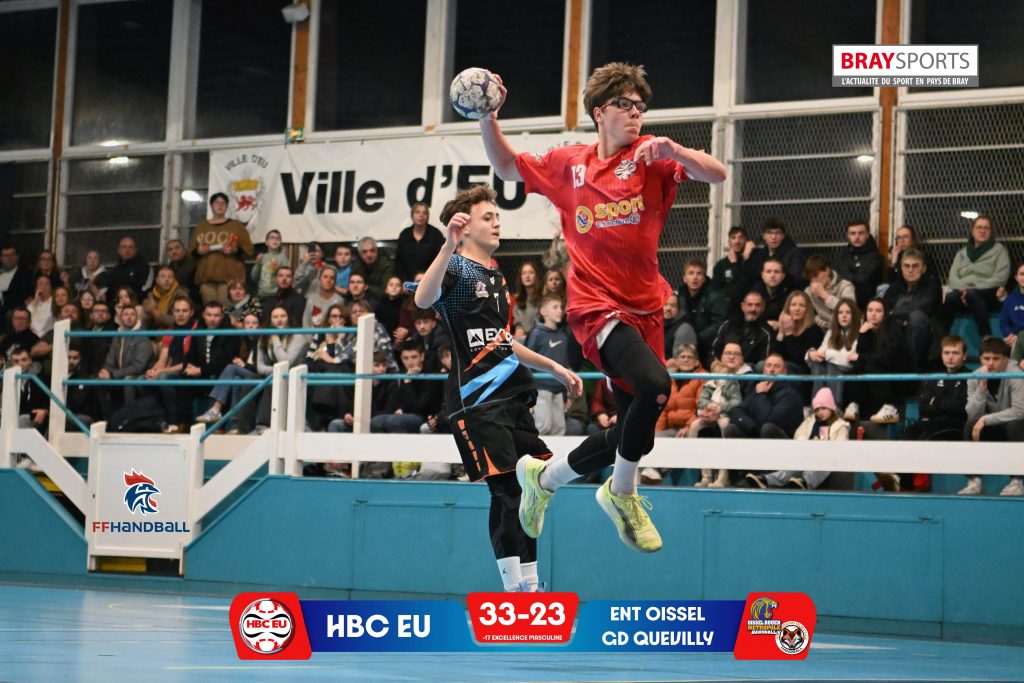 Samedi 20 décembre 2025, le HBC Eu recevait l’entente Oissel / Césaire Levillain pour le compte de la 10ᵉ journée du championnat d’Excellence -17. Une rencontre au parfum particulier, presque une finale avant l’heure, puisque l’issue de ce match déterminait l’accès à la seconde phase du championnat, en poule haute. Autrement dit, une place parmi les six meilleures équipes de Normandie était en jeu pour les protégés de Mathieu Michaux.