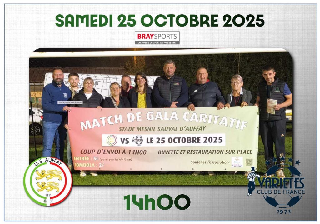 L’US Auffay se confrontera au Variétés Club de France le 25 octobre prochain au profit des Mille et un Sourires de Valentine