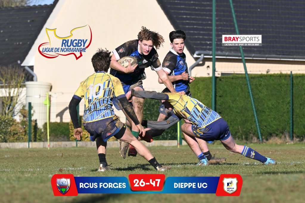 Malgré une excellente entame de rencontre, concrétisée par deux essais inscrits en seulement 14 minutes, les Forgions ont ensuite subi la pression dieppoise. Plus réalistes et dominateurs dans le jeu, les visiteurs ont progressivement pris l’ascendant pour finalement s’imposer sur le score de 47 à 26.