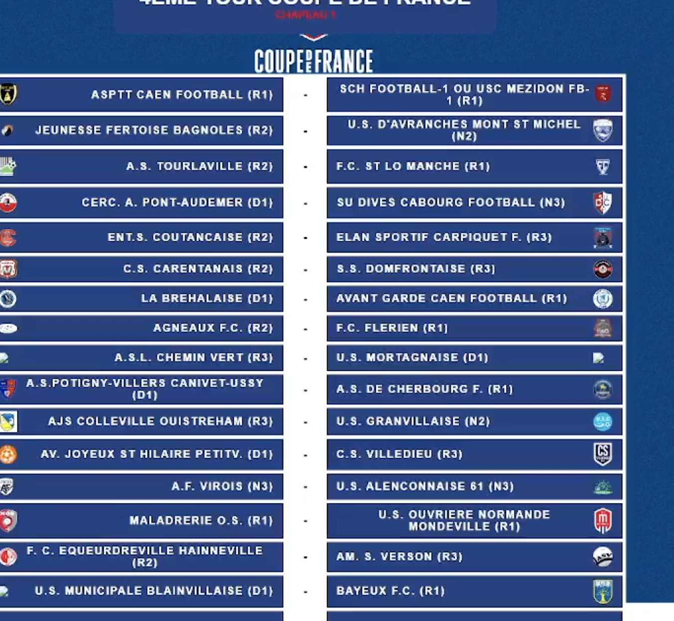 Mercredi 17 septembre 2025, la Ligue de Normandie procédera au tirage au sort du 4ᵉ tour de la Coupe de France 2025/2026.