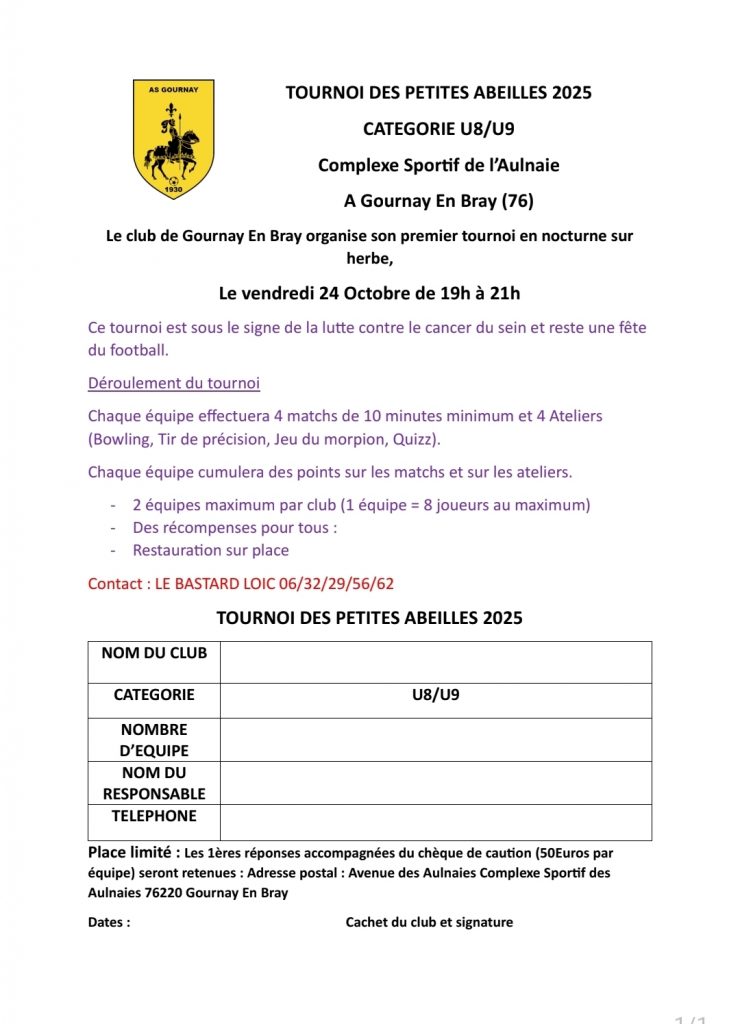 L’AS Gournay-en-Bray se mobilise pour Octobre Rose avec un tournoi des « Petites Abeilles »